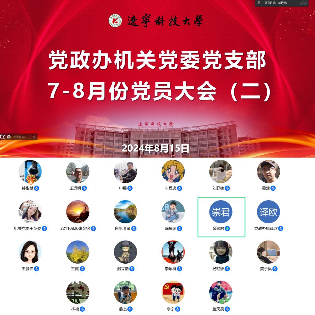 8月15日上午,党政办机关党委党支部通过腾讯会议召开党员大会,围绕党的二十届三中全会精神开展集体学习和“读看思研”活动。党支部书记李宁主持会议。