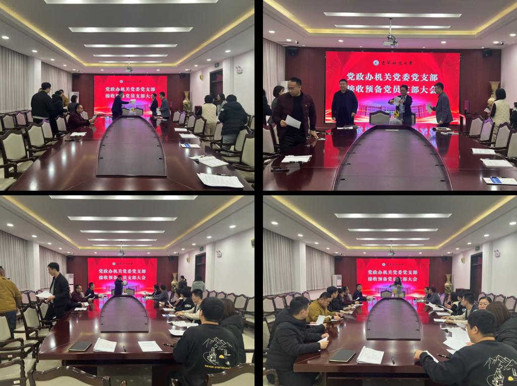 12月19日,党政办机关党委党支部在校部120(东)会议室召开接收预备党员支部大会,就发展对象单译欧同志能否接收为预备党员事宜进行讨论和表决。会议由党支部书记李宁主持。