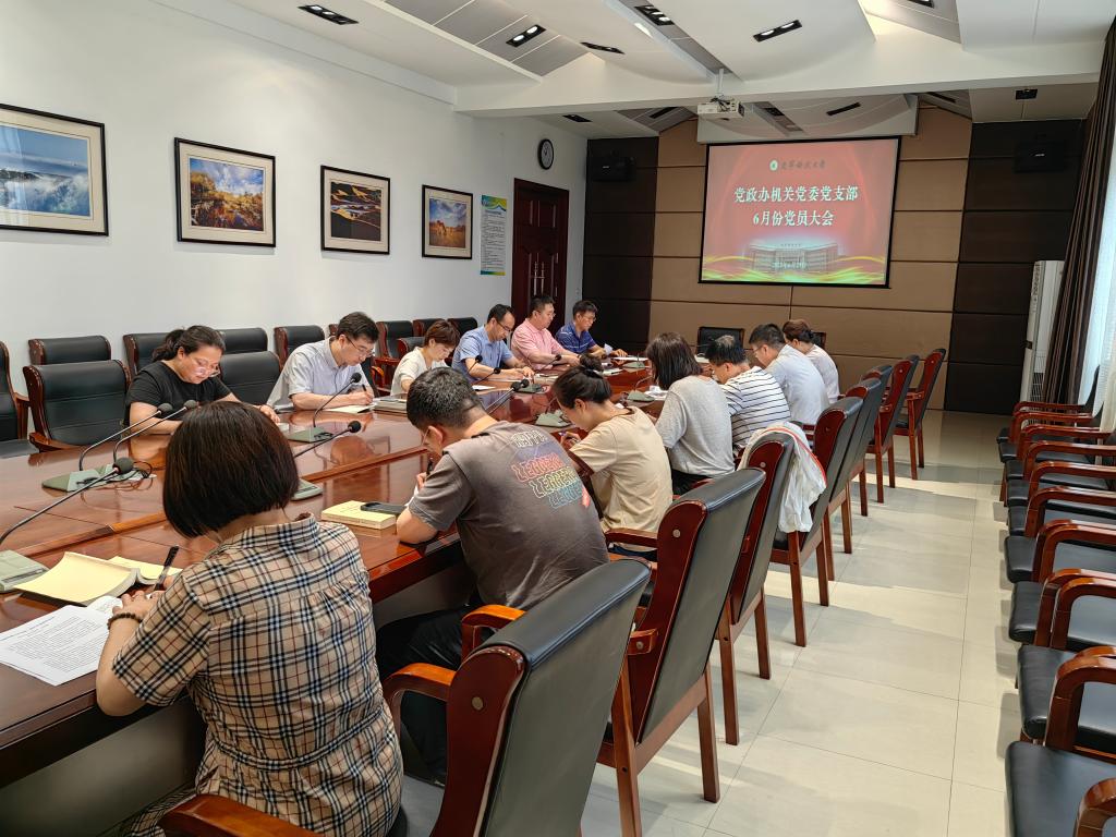 6月29日,党政办机关党委党支部在校部421会议室召开党员大会,开展主题教育学习活动。会议由党支部书记李宁主持。校党委书记李平以普通党员身份参加了会议。