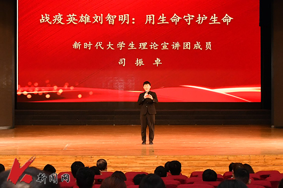 李茜南演讲的是杰出科学家、“两弹一星”元勋邓稼先的感人故事。李茜南说,为了祖国,为了国家防科研事业的发展,邓稼先默默无闻奋斗了数十年。对祖国、对民族他鞠躬尽瘁,无私奉献;干工作他身先士卒、不怕牺牲、不求名利,甘当无名英雄。面对新时代新任务新要求,我们一定要以邓稼先为榜样,坚守正道、追求真理、甘于奉献,将自己的人生融入实现中华民族伟大复兴中国梦的奋斗之中。司振卓宣讲的题目是《战‘疫’英雄刘智明:用生命守护生命》,他激昂地说,在这场艰苦卓绝的抗疫斗争中,如刘智明院长这样的医务工作者们用大爱护众生,献出了自己宝贵的生命。作为新时代大学生,我们要大力弘扬生命至上、舍生忘死的伟大抗疫精神,凝聚起勠力同心、锐意进取的磅礴力量,在全面建设社会主义现代化国家的征程中贡献自己的青春力量。