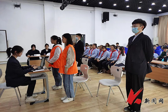 活动中,经法学院法律系教师房娇娇和学生代表白钰仟,共同为同学们普及了基本的法律知识。白钰仟以生动的语言讲解基本的法律概念、意义以及其他法律知识,让原本抽象的道理变得通俗易懂。青华小学的同学们也对法律知识表现出极大的兴趣,大家积极提问,互相讨论,畅所欲言,现场气氛十分热烈。为了让同学们更好的了解庭审过程,法学宣讲小分队的学生组织进行了两场模拟庭审。他们以鞍山市某校园发生的真实案件为原型,在庄重严肃的氛围中模拟演示了庭审现场,加深大家对理论知识的理解。
