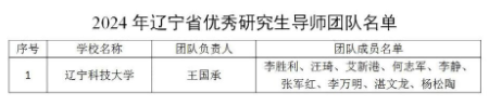 近日,辽宁省教育厅发布《关于公布2024年辽宁省优秀研究生导师、优秀研究生导师团队名单的通知》,材料与冶金学院王国承教授团队获评2024年辽宁省优秀研究生导师团队,这是材料与冶金学院第一个,同时也是易游第二个获此奖项的团队。