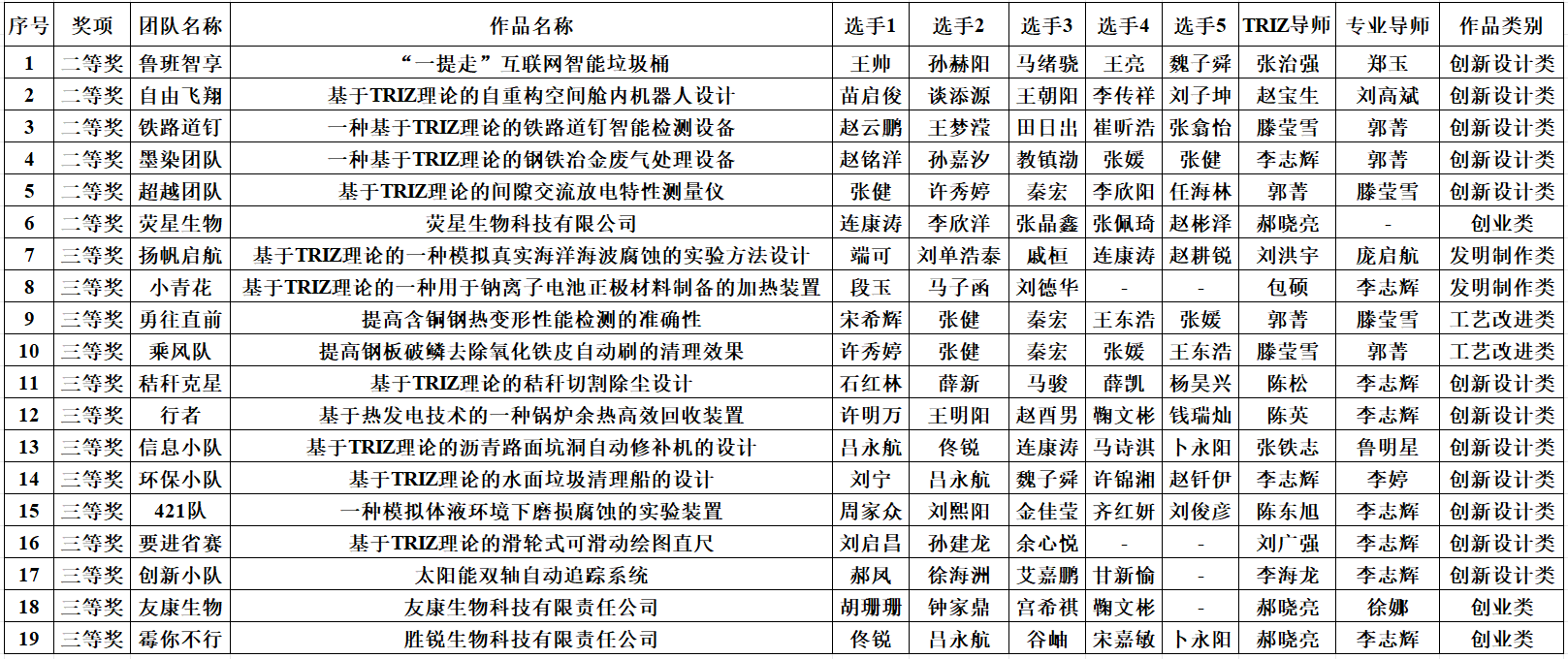 大赛依托创新创业学院和材料与冶金学院联合主办、TRIZ协会承办的第六届易游创新方法大赛,评选出的优秀作品,在辽宁省大学生创新创业管理共享平台,经负责老师指导、修稿、审核、推荐43项作品,经专家网络初评、现场答辩评审,最终易游(中国)获得二等奖6项、三等奖13项,获奖数量创历史新高。
