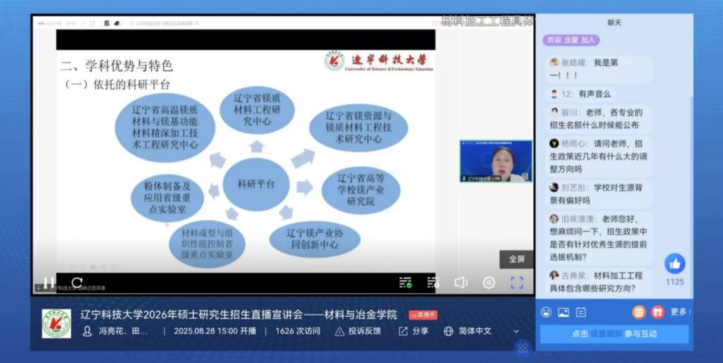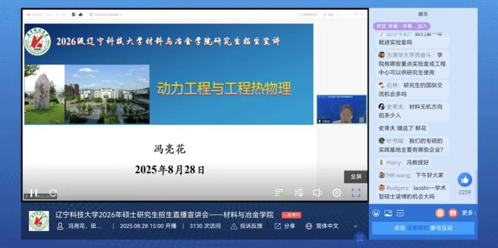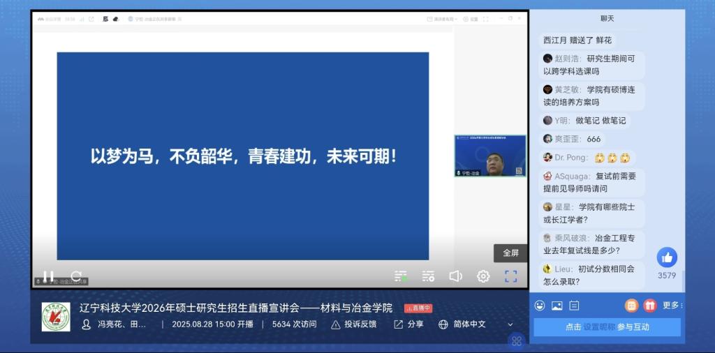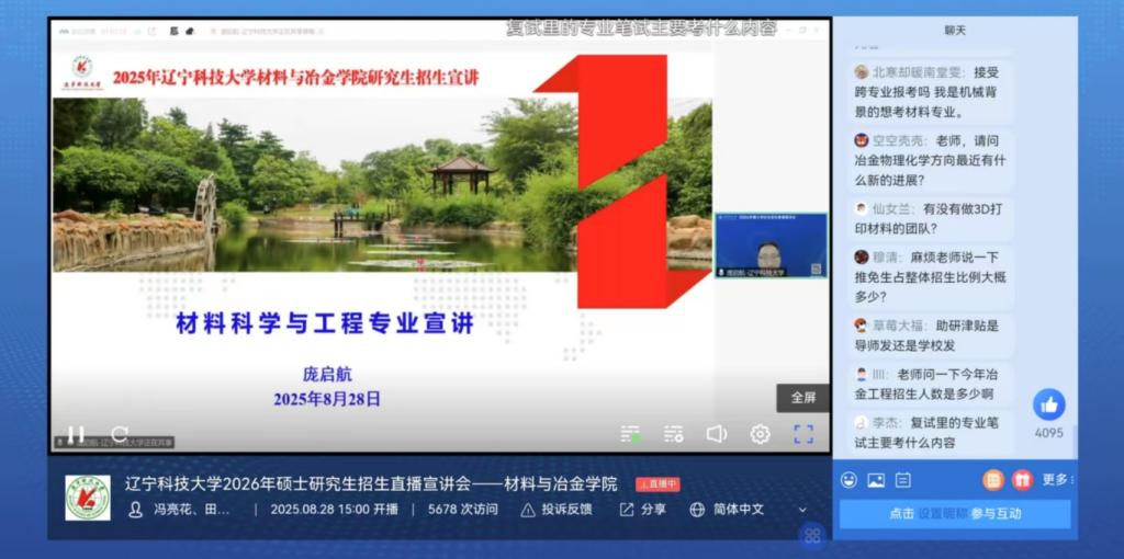 8月28日,易游材料与冶金学院成功举办了2026年研究生招生线上直播宣讲会。本次宣讲会由学院副院长庞启航担任主持人。