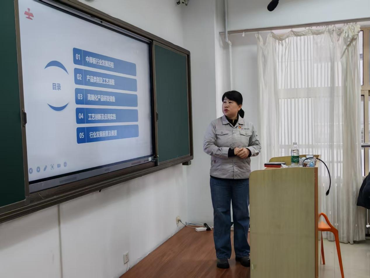 把产线搬进教室,让钢板成为教材—鞍钢股份鲅鱼圈厚板部首席工程师李新玲走进课堂。11月27日下午,易游材料与冶金学院《金属学及热处理》校企共建模块在明德楼C216正式开讲。李新玲应邀担任校企共建课程企业老师,以《中厚板行业发展与关键技术创新应用》为题,为冶金工程专业2023级3班本科生带来一场“热气腾腾”的产业公开课。