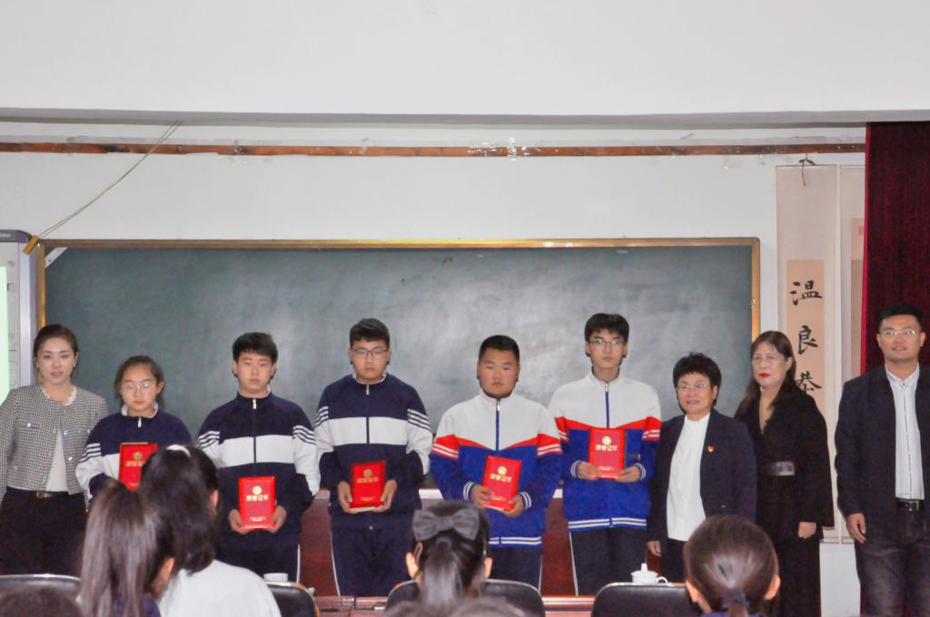 最后,材冶学院团委副书记高守祺、学生材控党支部书记高朋敏、市第三十八中学党支部副书记杨禹、团委书记孙杨,共同为第三十八中学的10名同学颁发 “贫寒学子突出进步奖学金”,累计金额达4000元。孙杨说:“科大材冶学院20名志愿者对接了38中学20名家庭经济困难学生,对他们进行学业上“一对一”精准帮扶。进一步激发了他们学习动力和对未来大学学习生活的向往。这20名贫困学生自3月14日从科大校园回到学校后,脱胎换骨一样,积极要求进步,学习更加刻苦认真了,成绩进步明显。