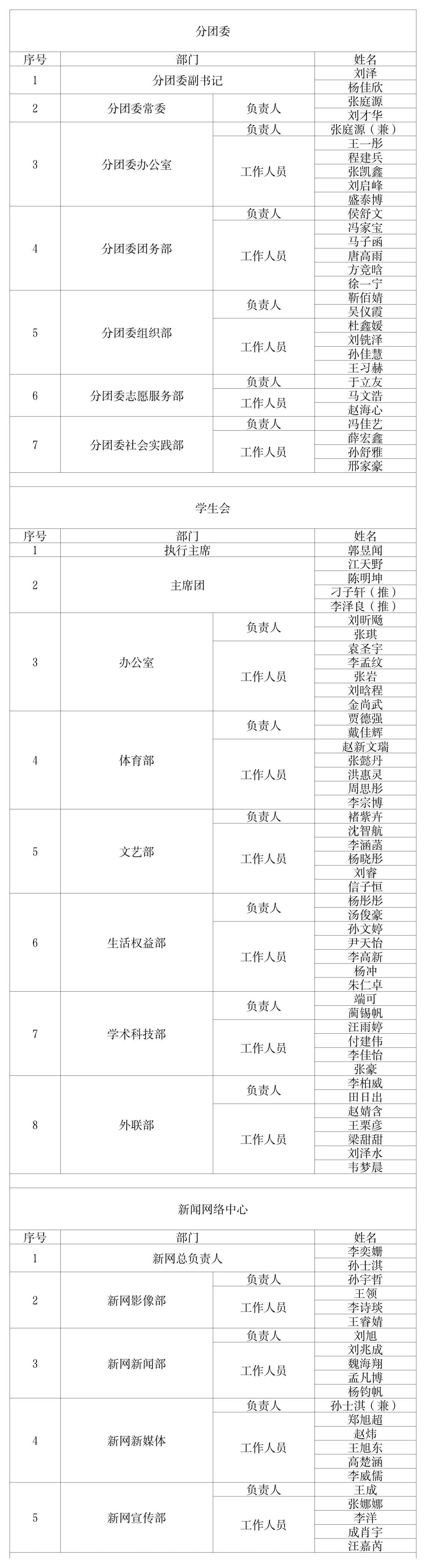 材冶学院第十六届分团委学生会新闻网络中心成员公示名单