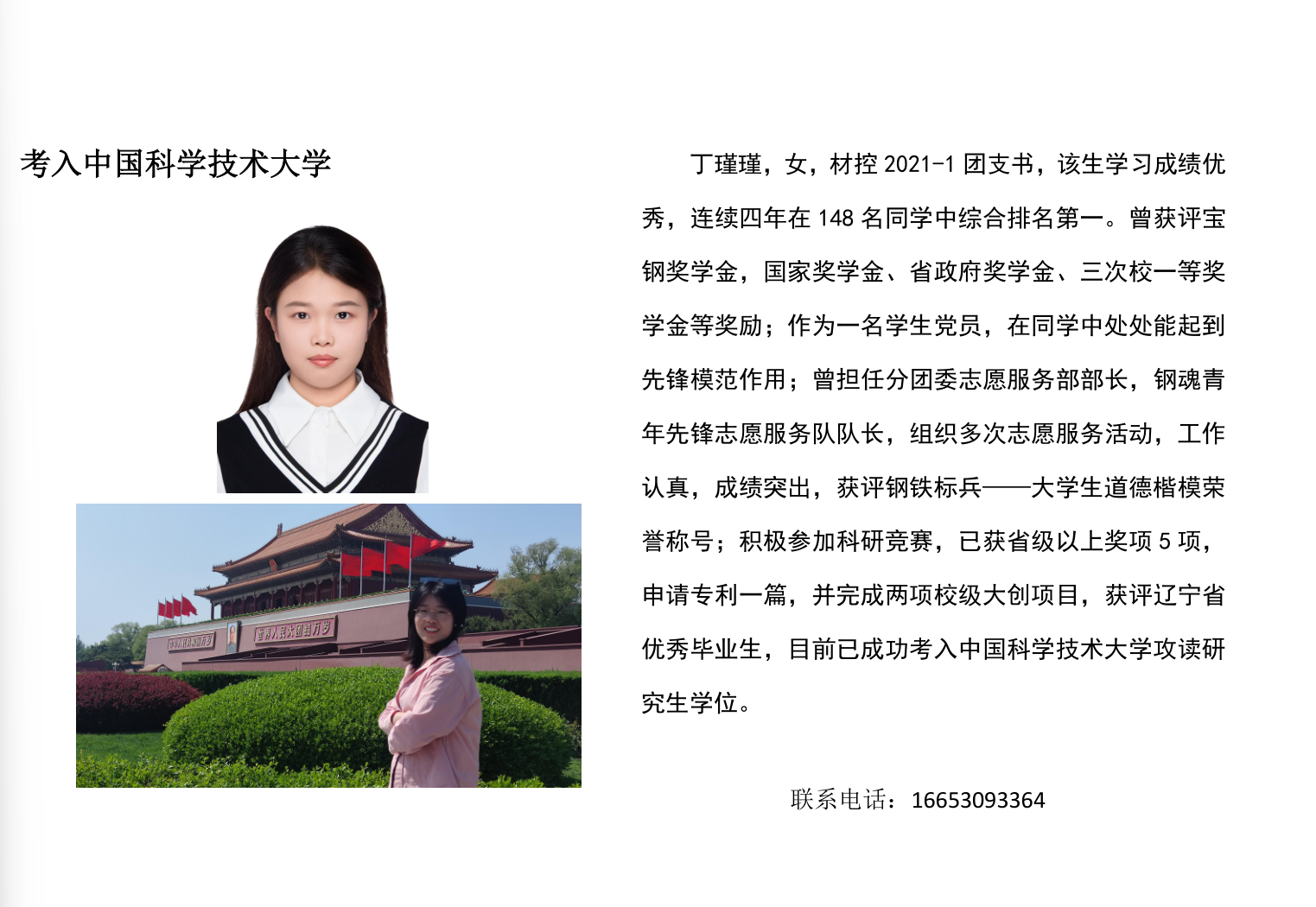 优秀毕业生|材控2021-1丁瑾瑾