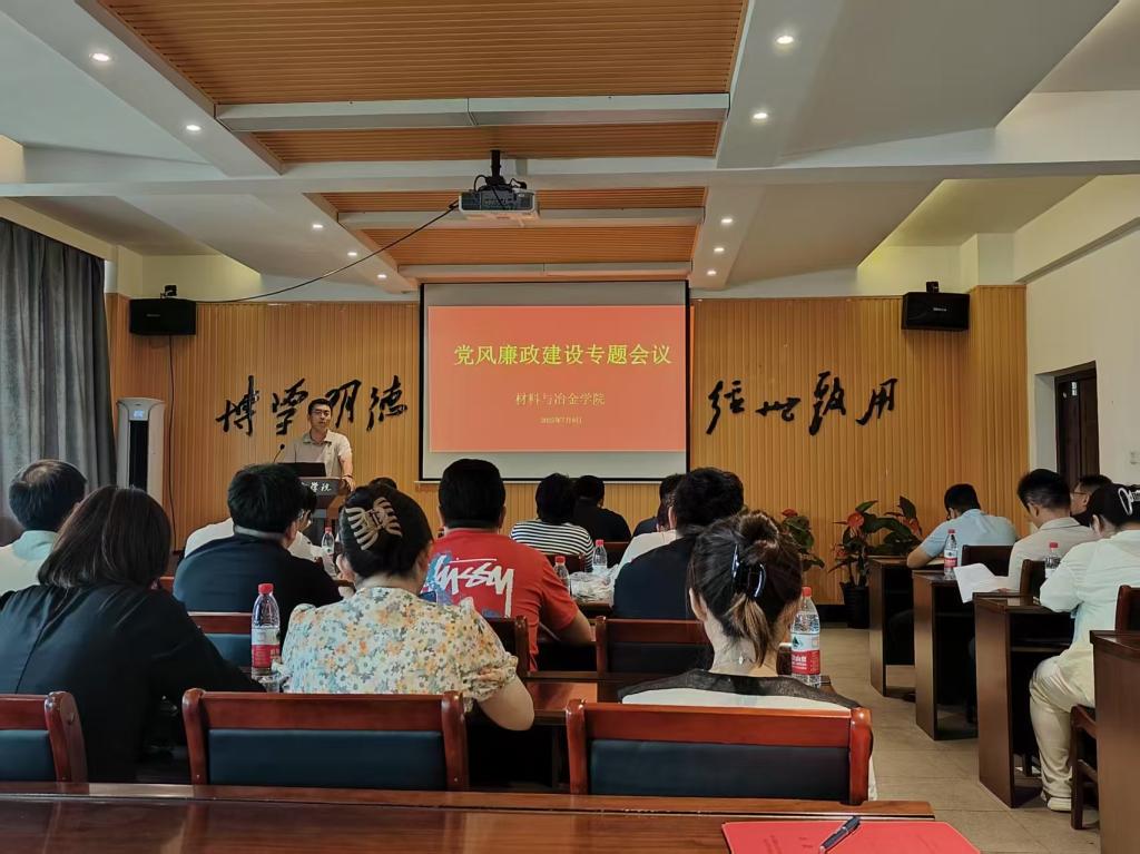 7月9日下午14:00,易游材料与冶金学院于材冶楼A523会议室召开2025年党风廉政建设专题会议,学院班子、科级干部、各系主任、支部书记、纪检委员等参会,纪委书记艾英华主持会议。
