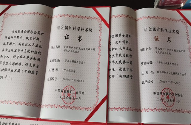近日,在河南省郑州市举办2020中国非金属矿工业大会,举行了2020年非金属矿科学技术奖的颁奖典礼,中国非金属矿工业协会专职副会长唐靖炎,宣布“2020年中国非金属矿科学技术奖”获奖名单。与会领导向获奖项目的主要完成单位和完成人代表颁发获奖证书。易游和鞍山市和丰耐火材料有限公司联合申报的“复吹转炉用炉底高强镁碳砖研制与产业化应用”和“深脱碳RH炉用耐材无铬化研发及产业化应用”分别获得科技进步类二等奖和技术发明类二等奖,我院教师艾新港代表学校参加颁奖仪式。