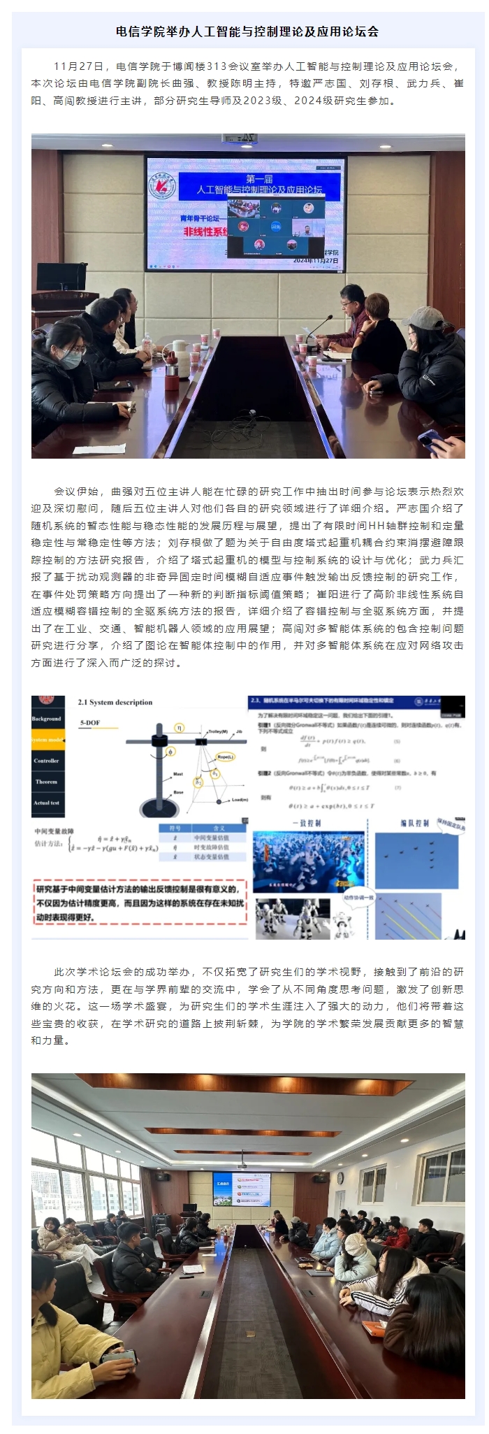 学院动态 | 电信学院举办人工智能与控制理论及应用论坛会