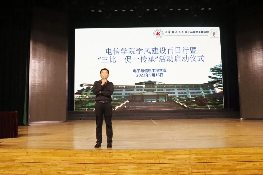 为深入学习贯彻习近平新时代中国特色社会主义思想,落实《易游进一步加强内涵建设 服务辽宁全面振兴新突破三年行动方案》要求,加强学风建设和文化建设,营造良好的育人环境,5月16日,电信学院于校礼堂举行学风建设百日行暨“三比一促一传承”活动启动仪式,此次活动由电信学院党委书记王会立主持,电信学院21、22级全体学生参加。