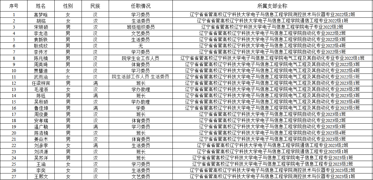 经学院团委培养审查,拟接收高梦晗等二十七名同志为共青团员,现将具体情况公示如下。