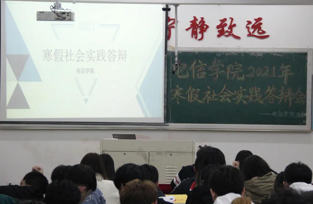 3月26日晚,电信学院于博闻楼九合组织开展主题为“把我的大学带回母校”寒假社会实践答辩会。此次答辩会由学生骨干张育玮主持,团委书记孙倩及2020级学生代表参加。