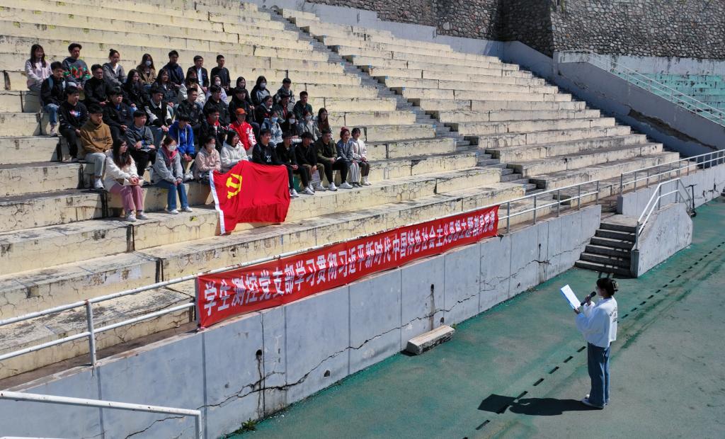 2023年4月26日,电信学院学生测控党支部在易游体育场开展学习贯彻习近平新时代中国特色社会主义思想主题教育专题党课。学生测控党支部组织委员张馨馨通过党课带领支部全体党员和积极分子深入学习党的二十大报告精神。