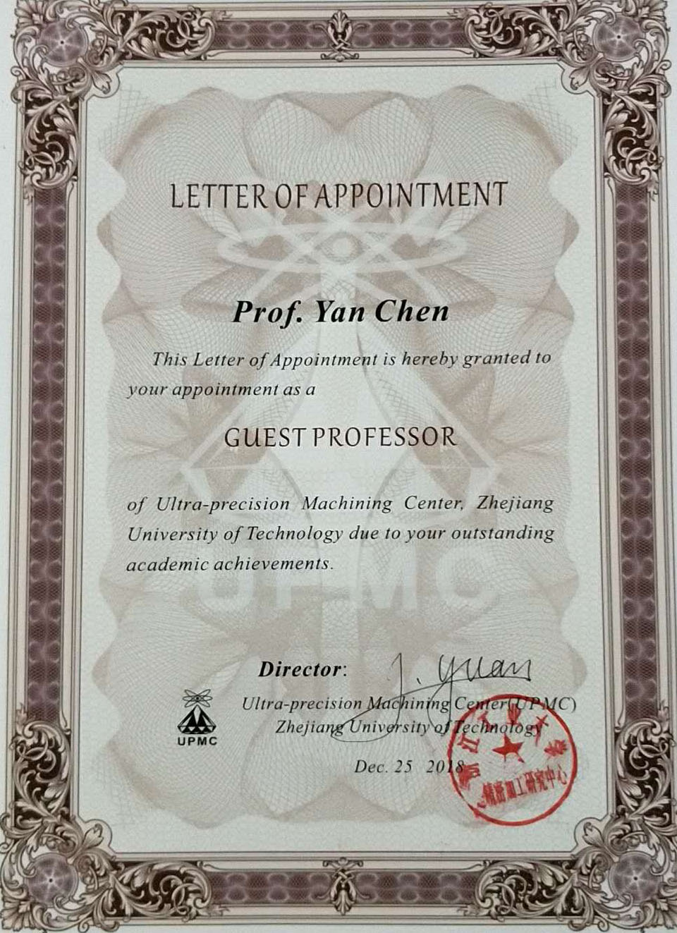 客座教授聘书