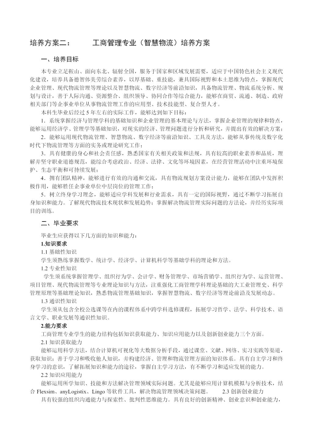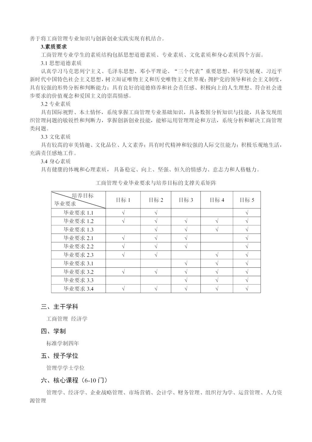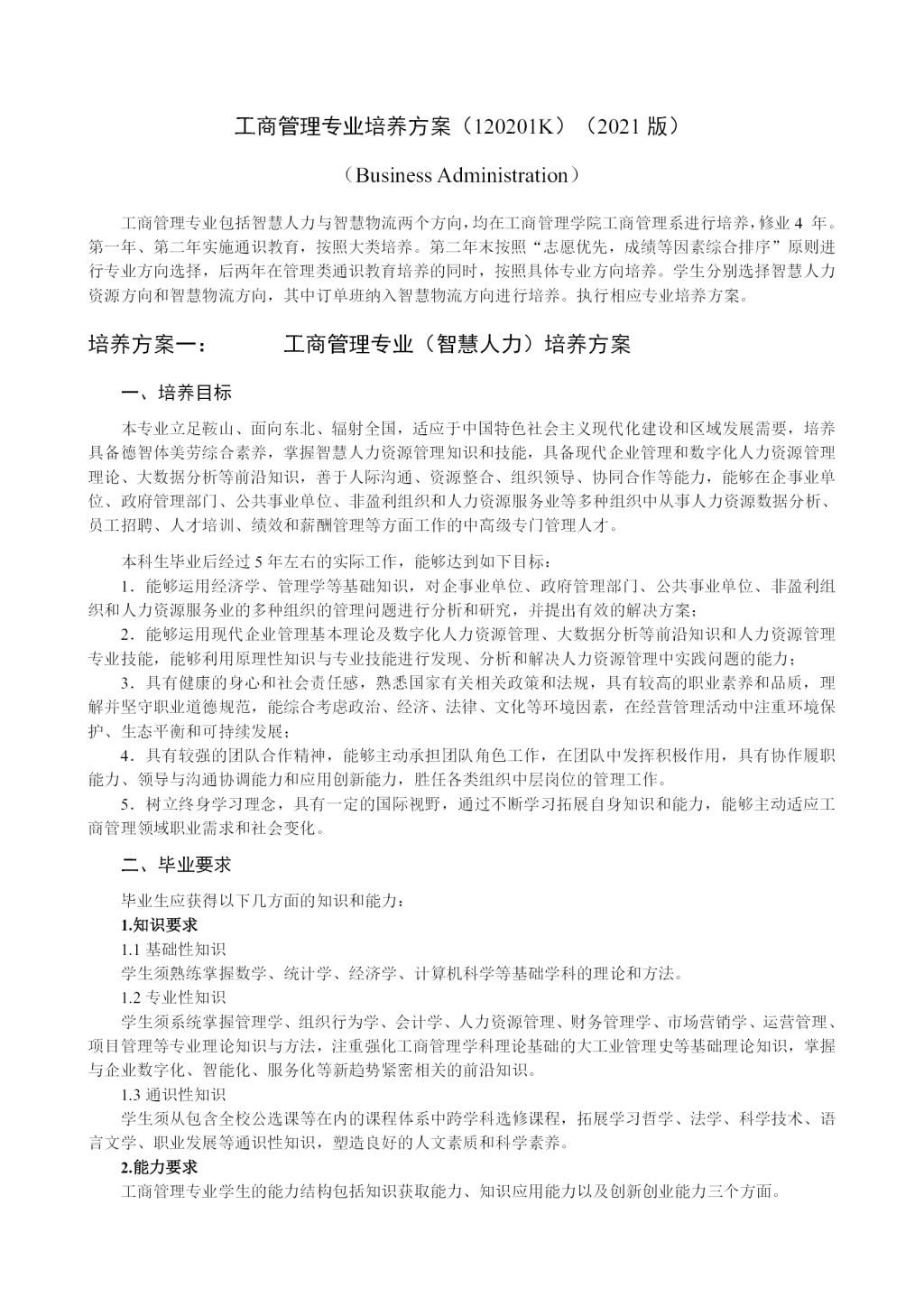工商管理专业培养方案