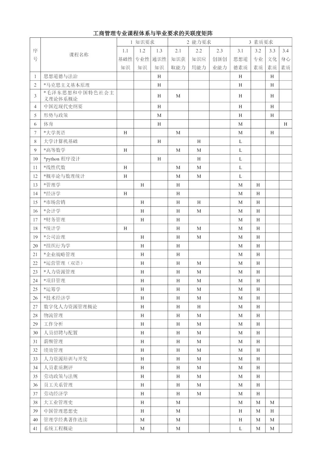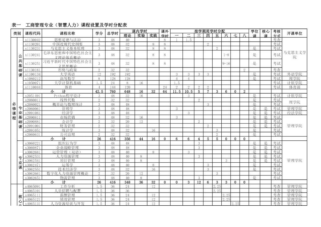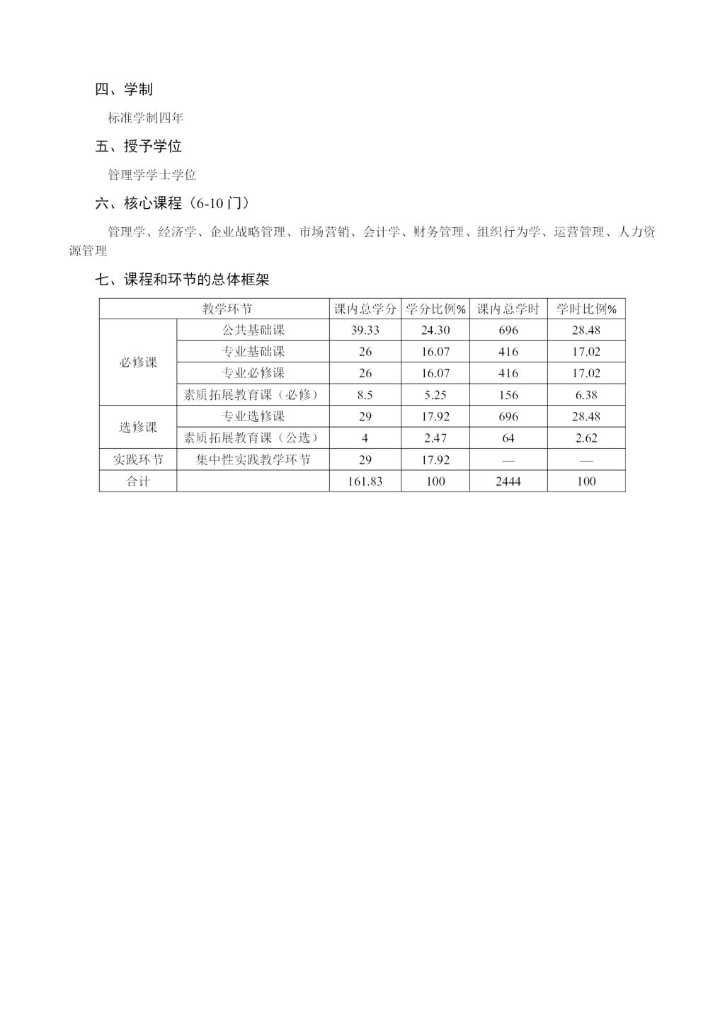 工商管理专业培养方案