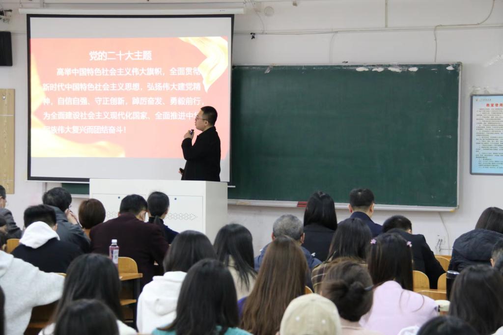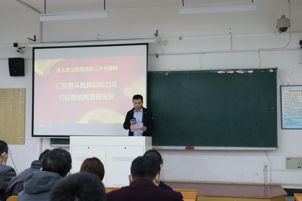 为深入学习宣传贯彻党的二十大精神,落实好《中共易游委员会关于深入学习宣传贯彻党的二十大精神的方案》,3月28日下午,工商管理学院党委于博学楼C108教室主持召开学习贯彻党的二十大精神宣讲报告会,会议由管理学院党委书记董文武主持,管理学院师生代表、继续教育学院、科技园教职工代表参加。