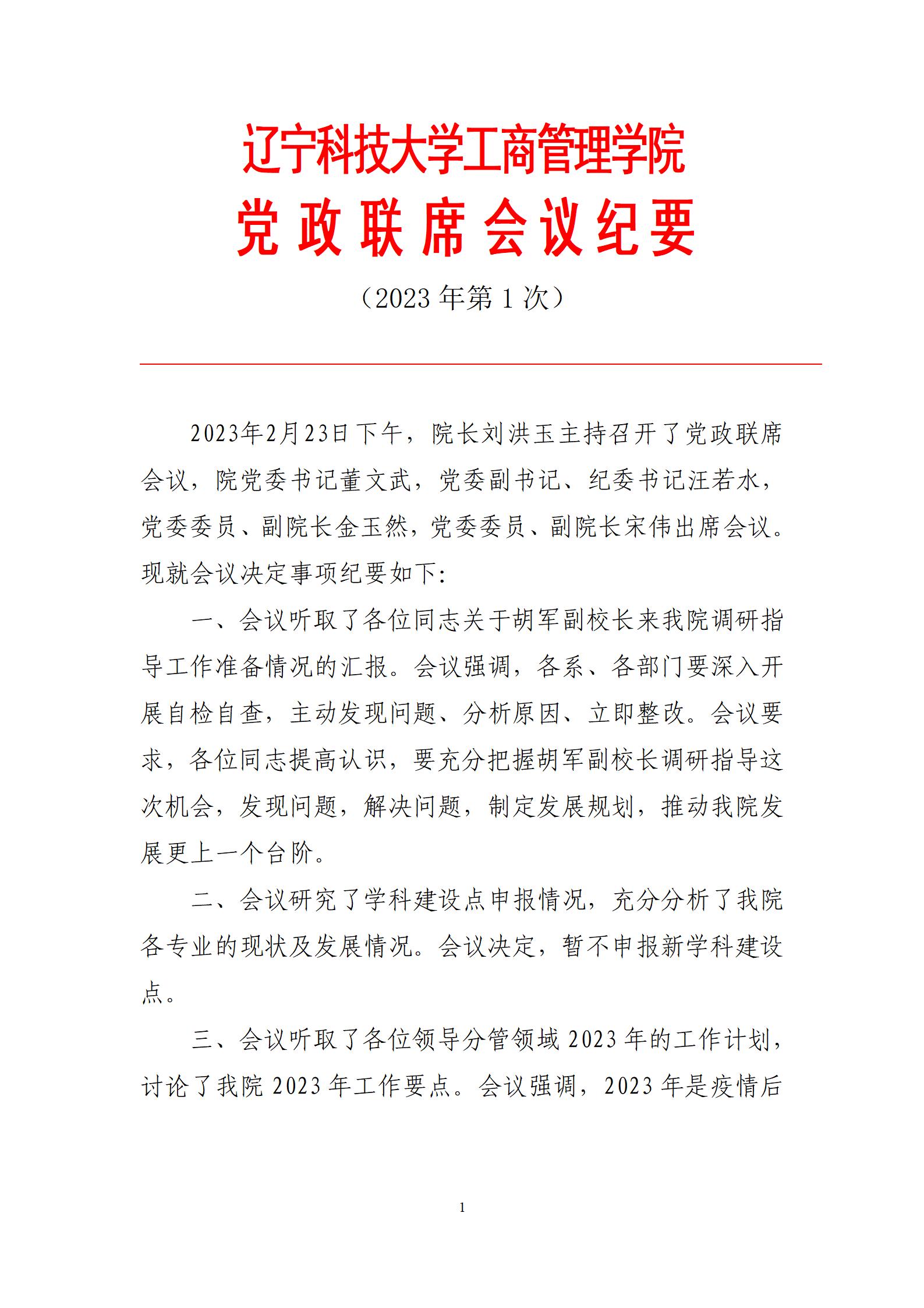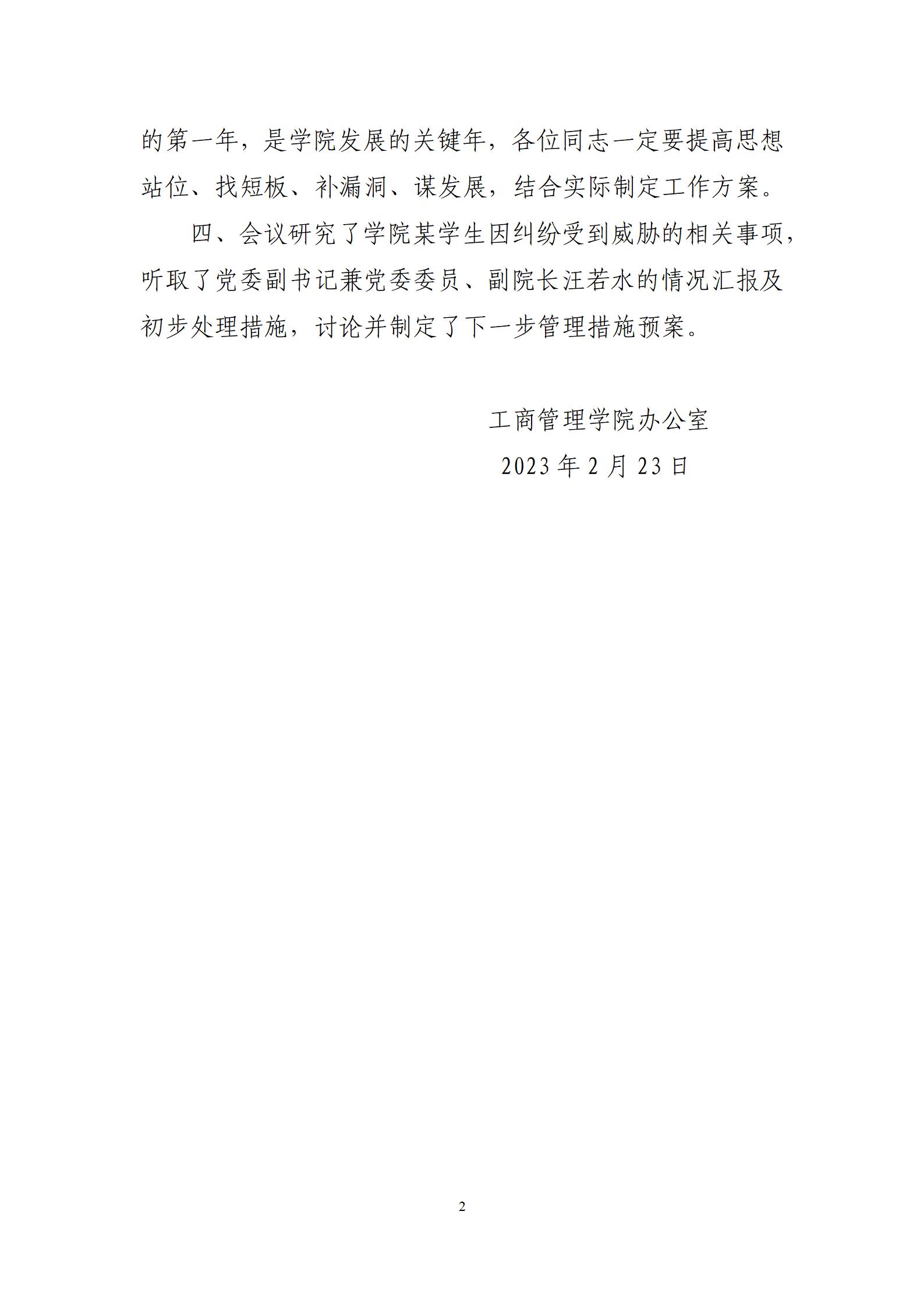 易游工商管理学院党政联席会议纪要(2023年第1次)