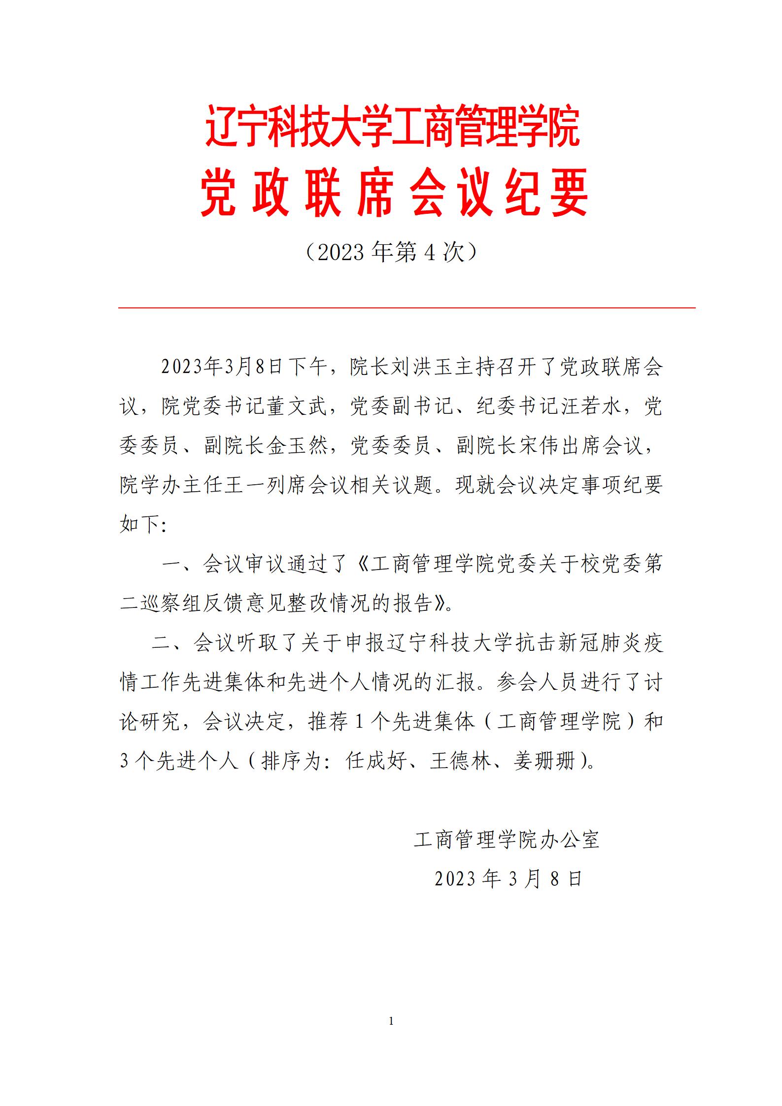 易游工商管理学院党政联席会议纪要(2023年第4次)