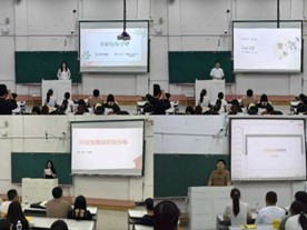 交流会上来自不同专业的四位毕业生依次上台,结合自身的经历和经验,为在场的同学们进行了生动而详实的宣讲。刘潇嶷、李雅博同学以考研为主题,分享了她们在考研过程中的心路历程和成功经验。他们详细介绍了考研的备考策略、时间安排以及心态调整等方面的技巧。他们表示,考研是一场持久战,这不仅需要同学们保持耐心和毅力,同时也应注重方法和效率。朱嘉鑫、岳贤雨同学则分别从就业的角度分享了各自的见解和经验。他们强调了职业规划的重要性,提醒同学们要关注行业动态和市场需求,结合自己的兴趣和优势做出合理的职业选择。