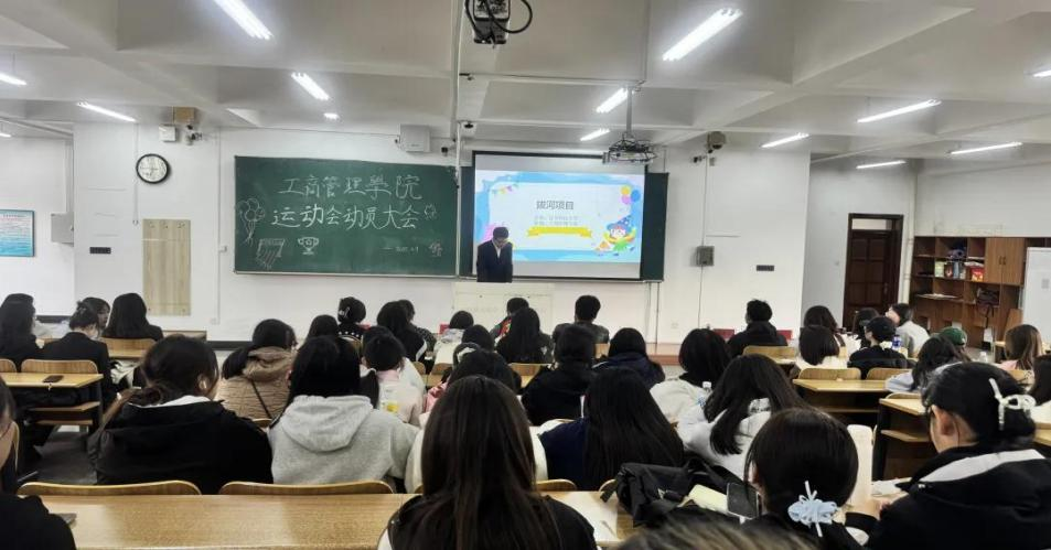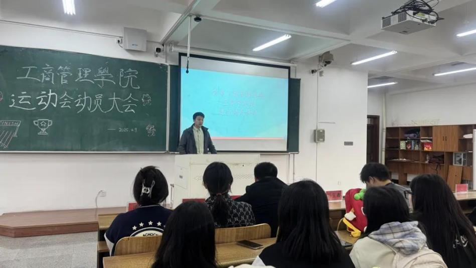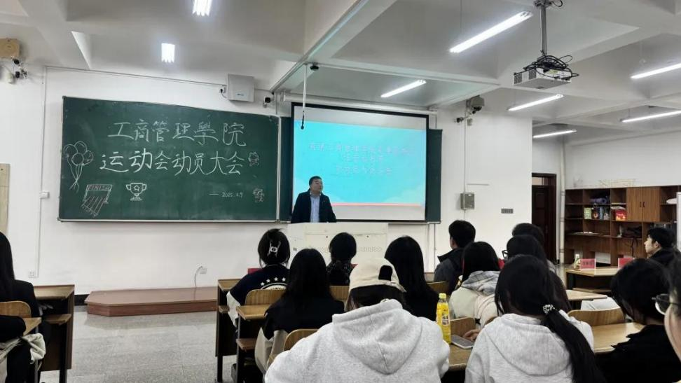 为激发学生参与热情,营造积极向上的体育氛围,4 月 9 日下午,易游工商管 理学院在明德楼 D308 召开校运会动员大会。学院党委副书记汪若水、2024 级辅导员王晨宇 及学生代表出席会议,共同为即将到来的校运会加油鼓劲,倡导以拼搏精神书写青春篇章。