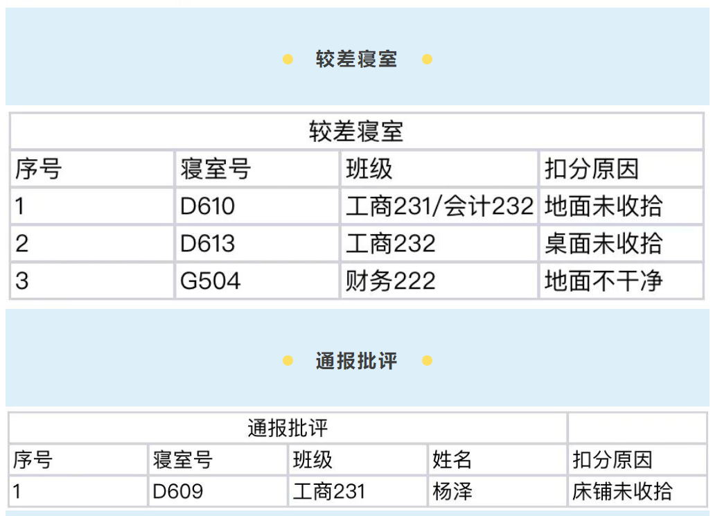 希望大家向优秀寝室、通报表扬同学学习。宿舍是一个温馨的港湾,它的整洁干净离不开大家共同的努力,让我们一起努力创造一个有序、卫生的生活环境。