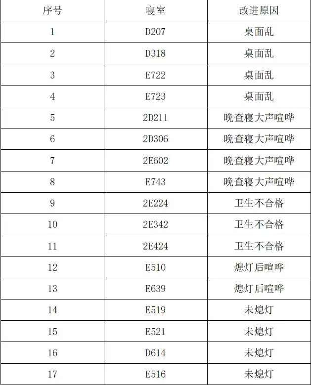 内务需改进的寝室