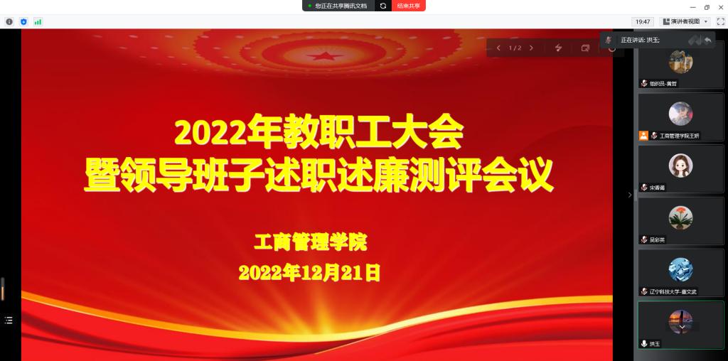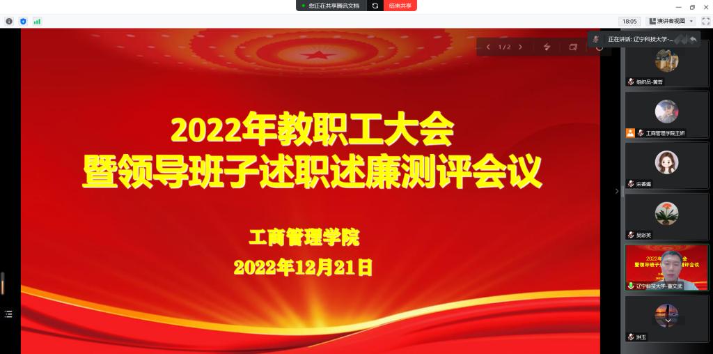 12月21日下午,工商管理学院召开2022年教职工大会暨领导班子述职述廉测评会议,校组织部组织员董德治出席,学院领导班子成员和全体教职工参加会议,会议由党委书记董文武主持。