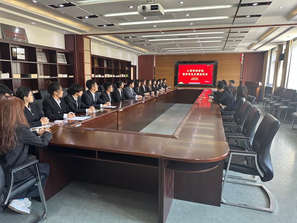 2025年4月25日下午,管理学院在411会议室召开教学信息反馈座谈会。学院副院长金玉然、各专业教师代表与学生代表齐聚一堂,围绕教学质量提升与人才培养模式展开深入交流。