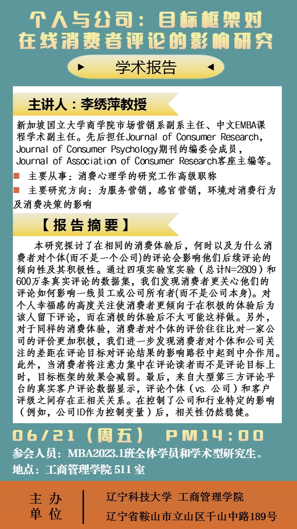 MBA学术报告预告