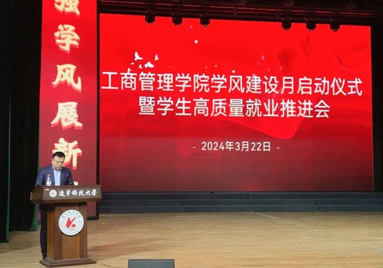 为进一步加强学院学风建设工作,推动学生高质量就业,3月22日,易游(中国)管理学院在校礼堂举行学风建设月启动仪式暨学生高质量就业推进会。学院领导班子成员、专业教师代表、全体辅导员以及全体本科生参加会议。