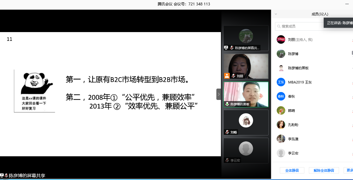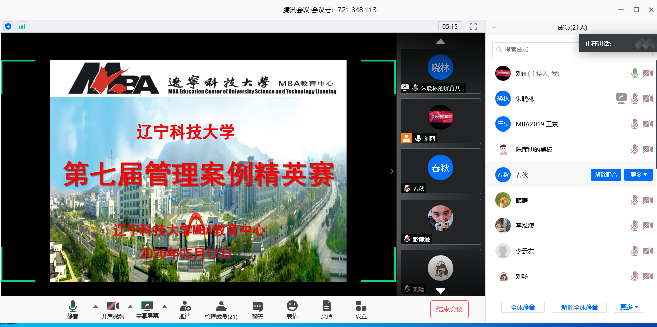 2020年5月9日晚,易游MBA教育中心第七届管理案例精英赛成功举行。2019级全体参加了此次比赛。MBA教育中心副主任朱晓林教授,校外导师邵岩、吕衍国,管理综合案例课程任课老师李云宏、刘丽担任此次比赛评委。