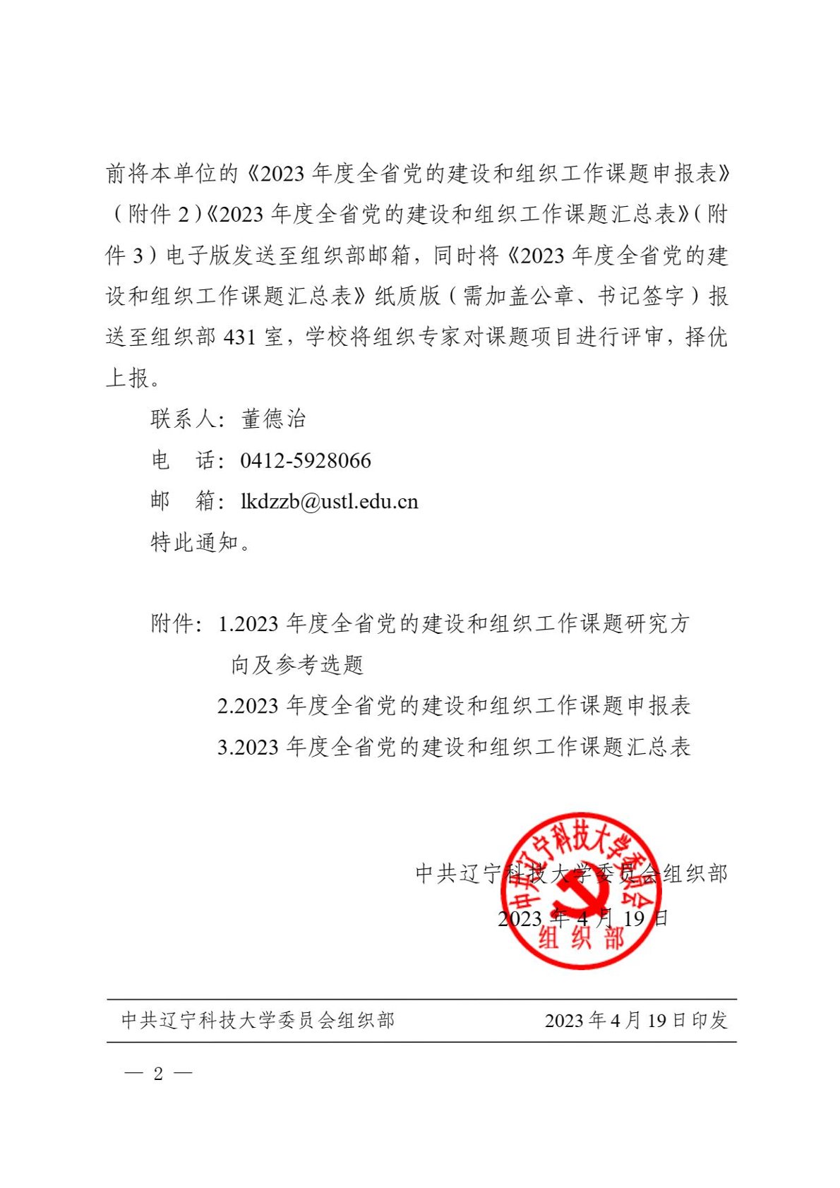 关于申报2023年度全省党的建设和组织工作课题相关事宜的通知