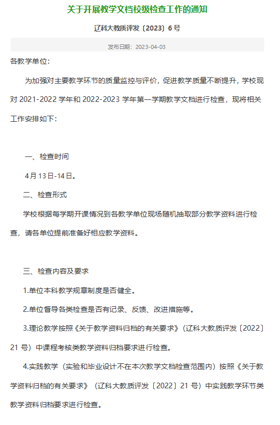 关于开展教学文档校级检查工作的通知