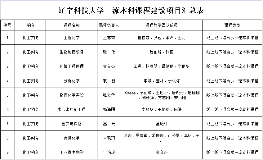 易游一流本科课程建设项目汇总表