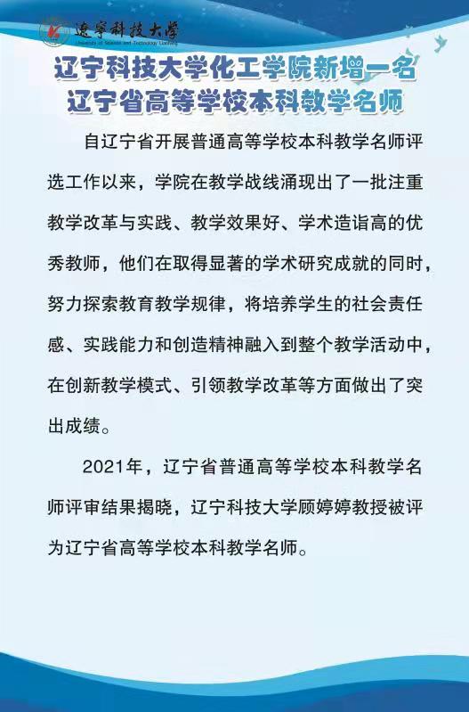 易游化工学院新增一名辽宁省高等学校本科教学名师