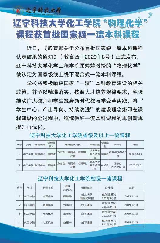 易游化工学院“物理化学”课程获首批国家级一流本科课程