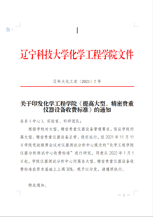 易游(中国)化工发〔2021〕7号 关于印发化学工程学院《提高大型、精密贵重仪器设备收费标准》的通知.doc