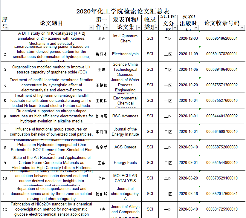 2020年化学工程学院检索论文汇总
