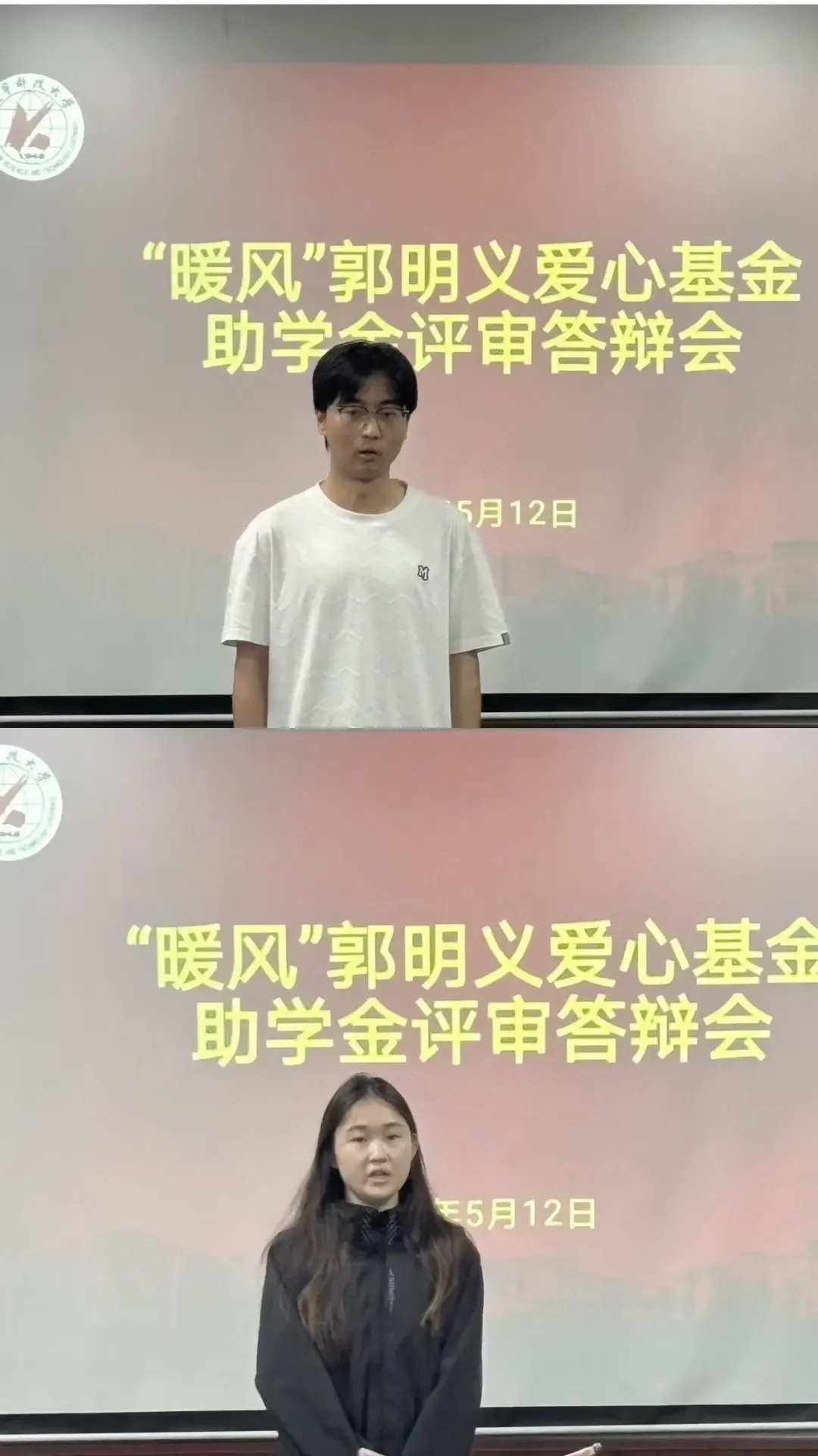 答辩会上,申请学生依次登台,围绕学业成绩、社会实践、志愿服务、家庭经济状况等内容展开个人陈述,全面展现自身成长与奋斗历程。评审团秉持“专业、公正、客观”的原则,对每名学生进行综合评价打分,经过评委集体投票表决,最终确定了13名同学作为2025年“暖风”郭明义爱心基金助学金拟资助人员,并进行公示。