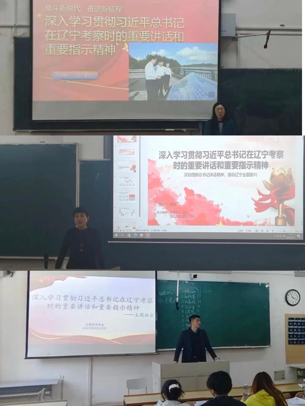 学习习近平总书记在辽宁考察时的重要讲话和重要指示精神,鼓励同学们将习近平总书记的重要讲话和指示精神转化为实际行动,在日常学习生活中积极践行,努力提升自身综合素质,以青春之我、奋斗之我,为实现中华民族伟大复兴的中国梦贡献青春力量。