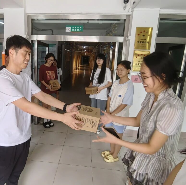 学院的领导老师们为留校考研的学生们送去了防暑物资。同时,学院老师们表示,学校和学院会全力保障暑期留校学生的学习生活需求,畅通沟通渠道,及时解决学生遇到的问题,为他们营造安全、舒适的环境,助力学生顺利完成暑期学习和科研任务。
