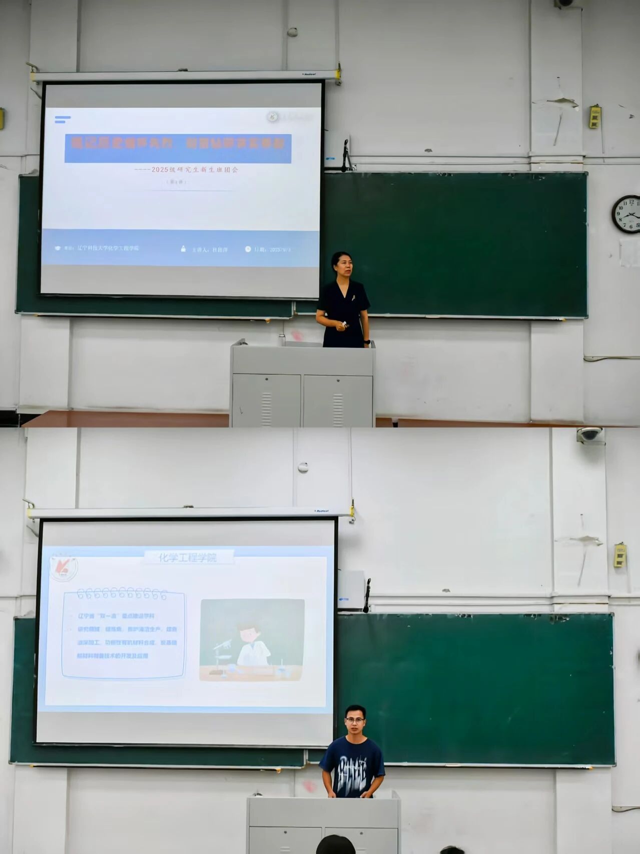 9月3日,化学工程学院以“铭记历史缅怀先烈,刻苦钻研求实奉献”为主题,组织了一次教育活动。活动分为“牢记使命,科技报国”主题班会与集体观看“纪念中国人民抗日战争暨世界反法西斯战争胜利80周年大会直播”两部分,分别由杜桂萍教授主讲、邹禾宇同学负责组织,2024级、2025级研究生在博学楼A301教室共同参与。