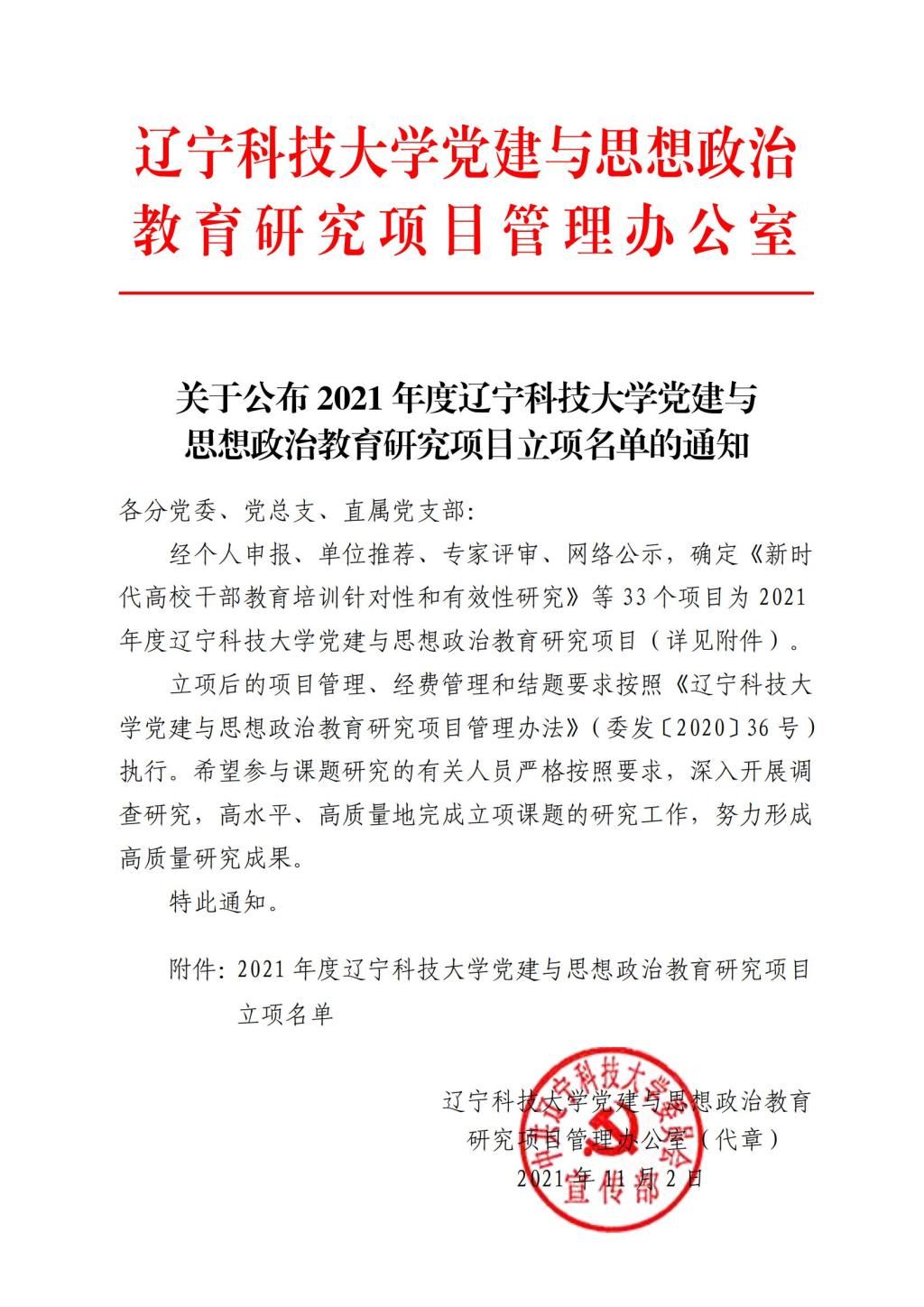 关于公布2021年度易游党建与思想政治教育研究项目立项名单的通知