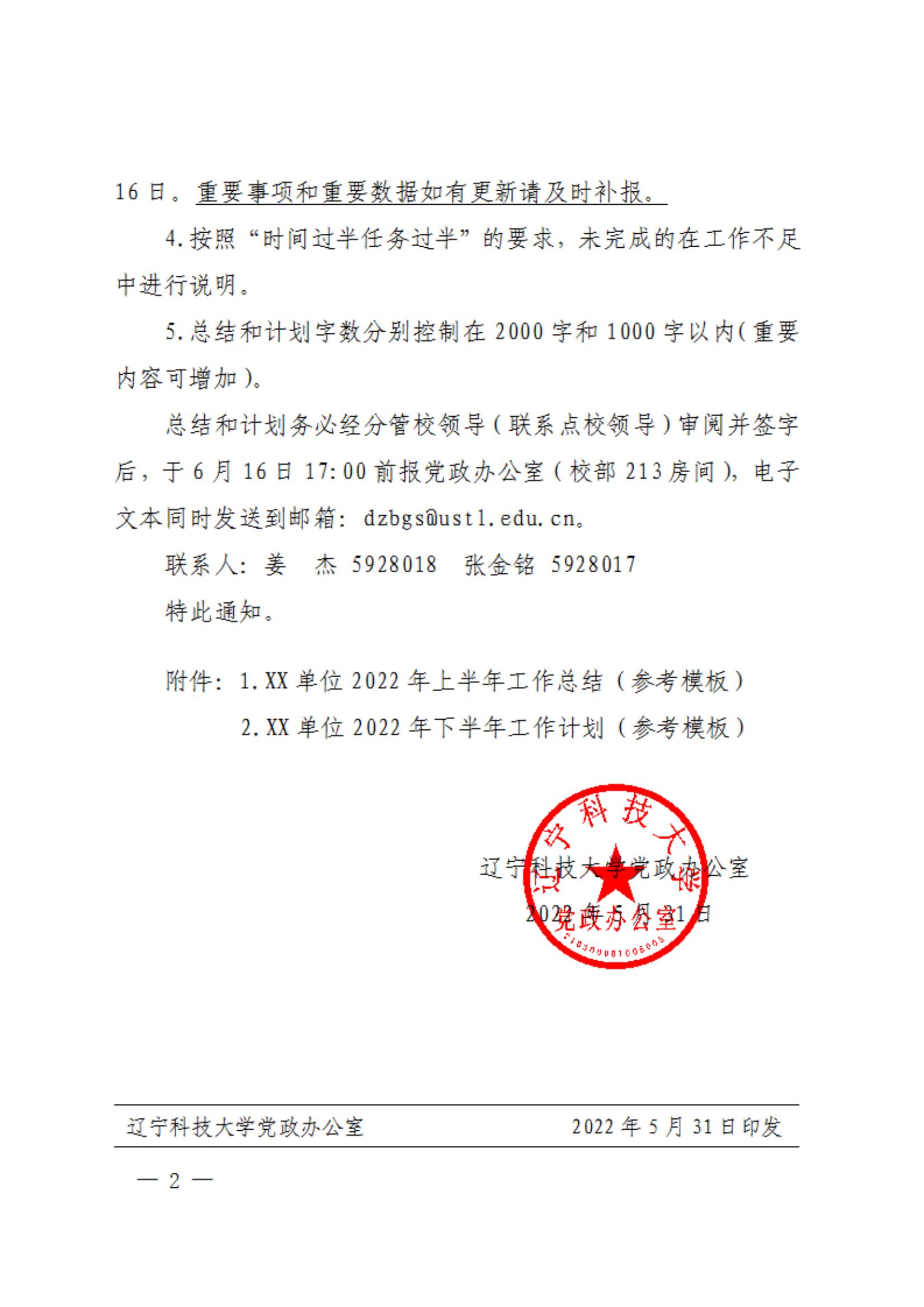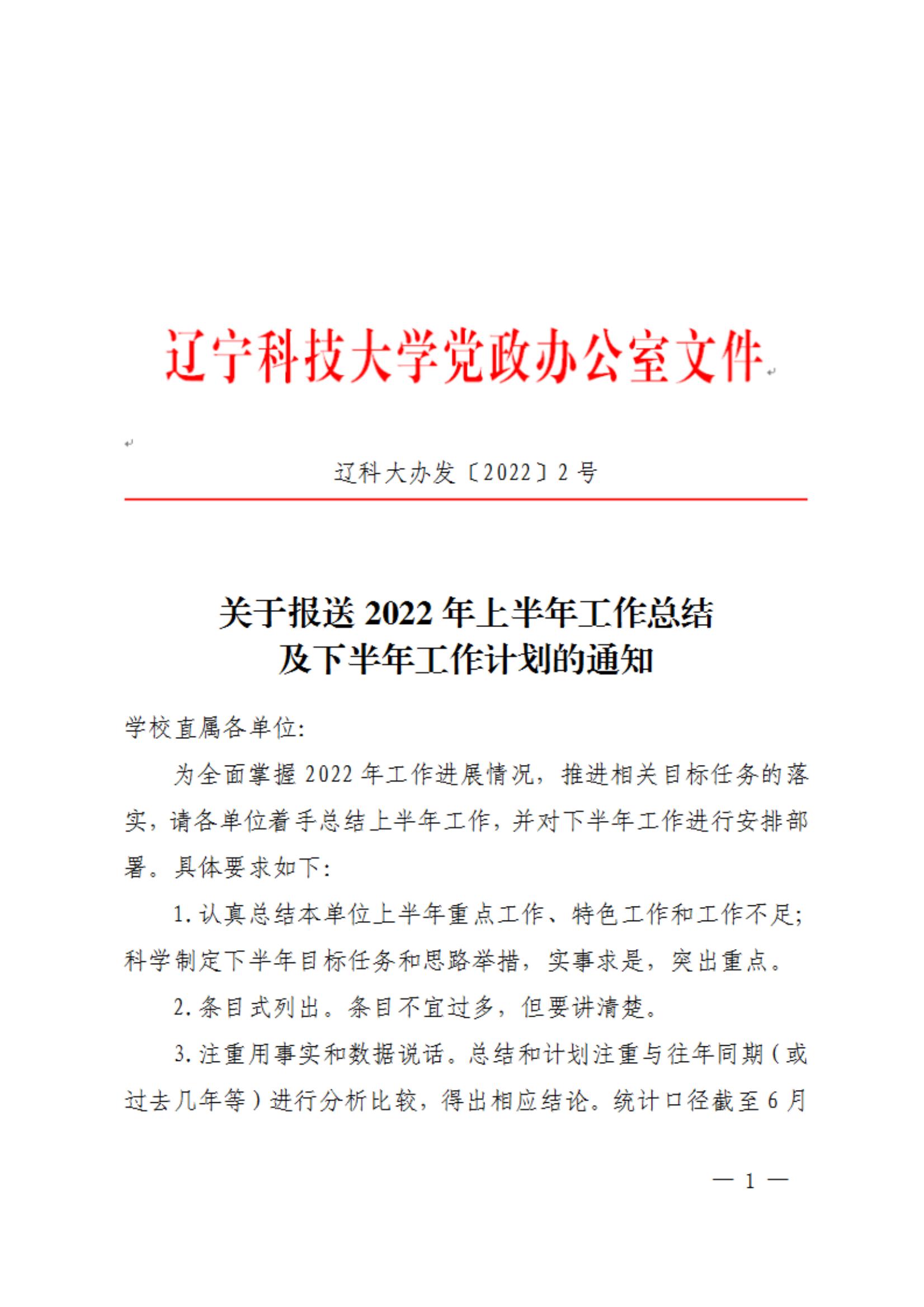 关于报送2022年上半年工作总结及下半年工作计划的通知