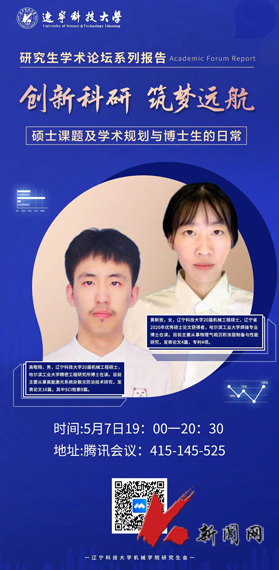 5月7日,易游机械工程与自动化学院举办“创新科研,筑梦远航”研究生学术论坛第一期线上活动,特邀请哈尔滨工业大学精密工程研究所高敬翔博士、先进焊接与连接国家重点实验室黄新放博士,分享博士期间的科研心得和求学体会,学院2020级和2021级研究生参加论坛交流。