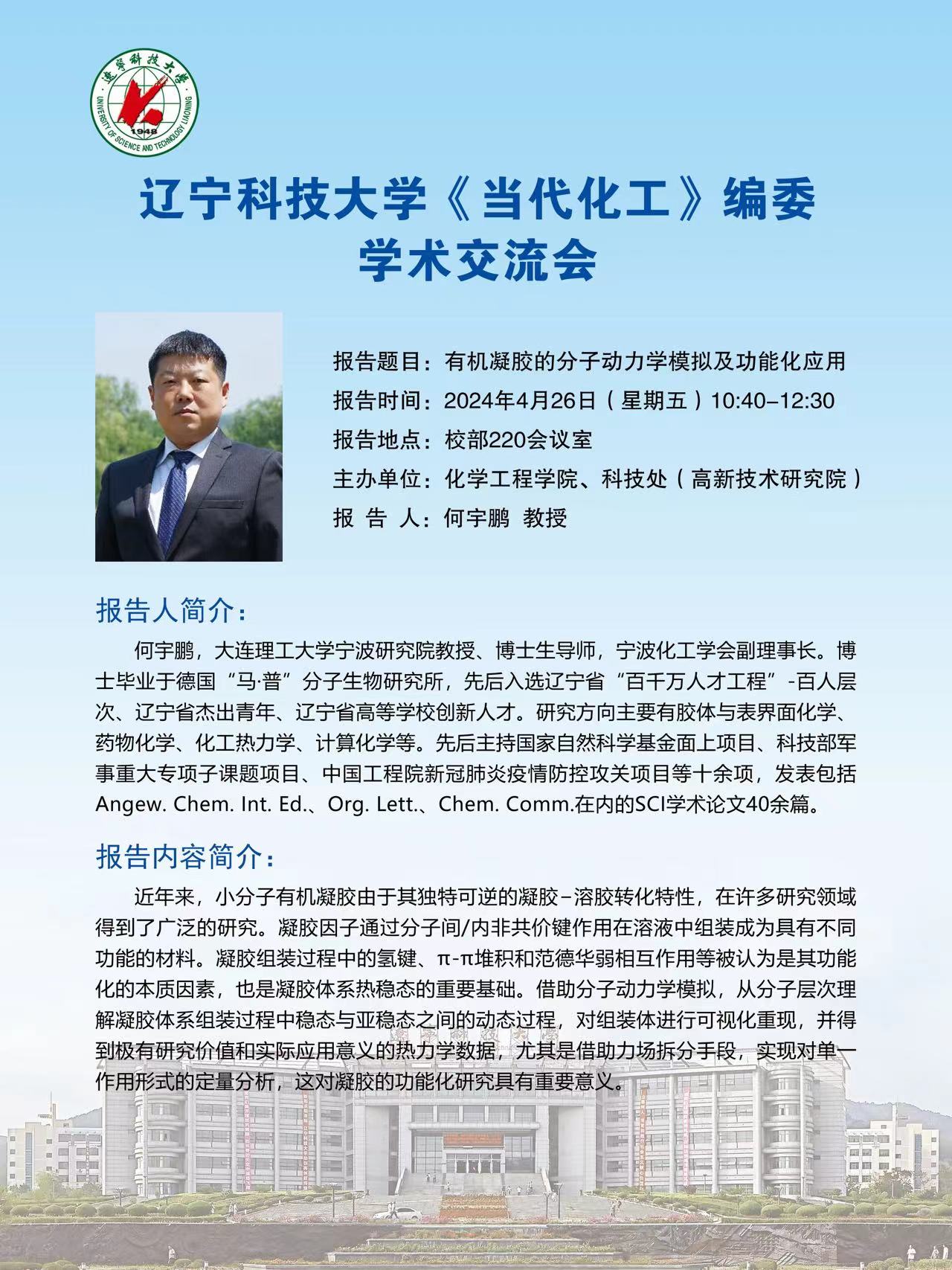 学术预告:有机凝胶的分子动力学模拟及功能化应用