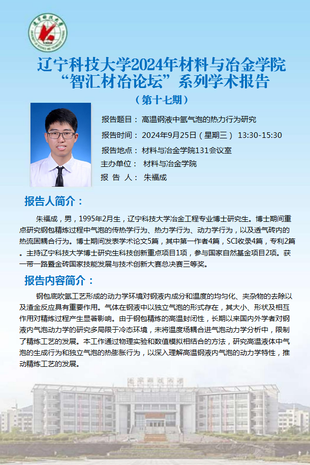 学术预告:高温钢液中氩气泡的热力行为研究